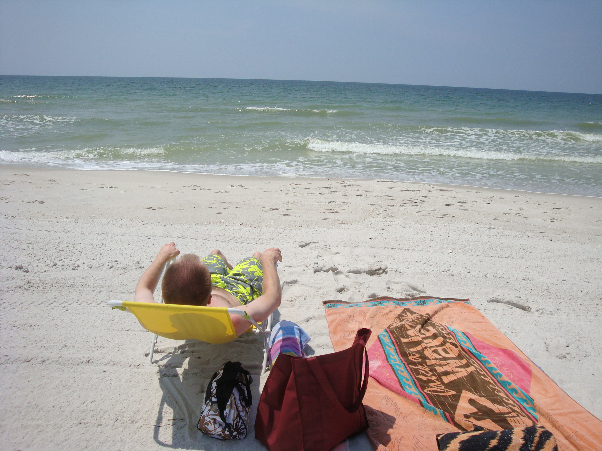 LoversKey1Mitch is a capable boater and Holly, an athletic first mate. They make a great team. After some effort in a powerful current, they anchored the boat a few feet off the beach at Lover’s Key and we all jumped into the water to wade to shore. The current was so swift we had to hang on to the anchor rope to keep from being swept out to sea. The water was dark and murky, filled with flotsam and jetsam belched out from the Caloosahatchee River as it empties into the Gulf of Mexico. Swimming was not much of an option but we had fun cooling off a little and finding sea shells.